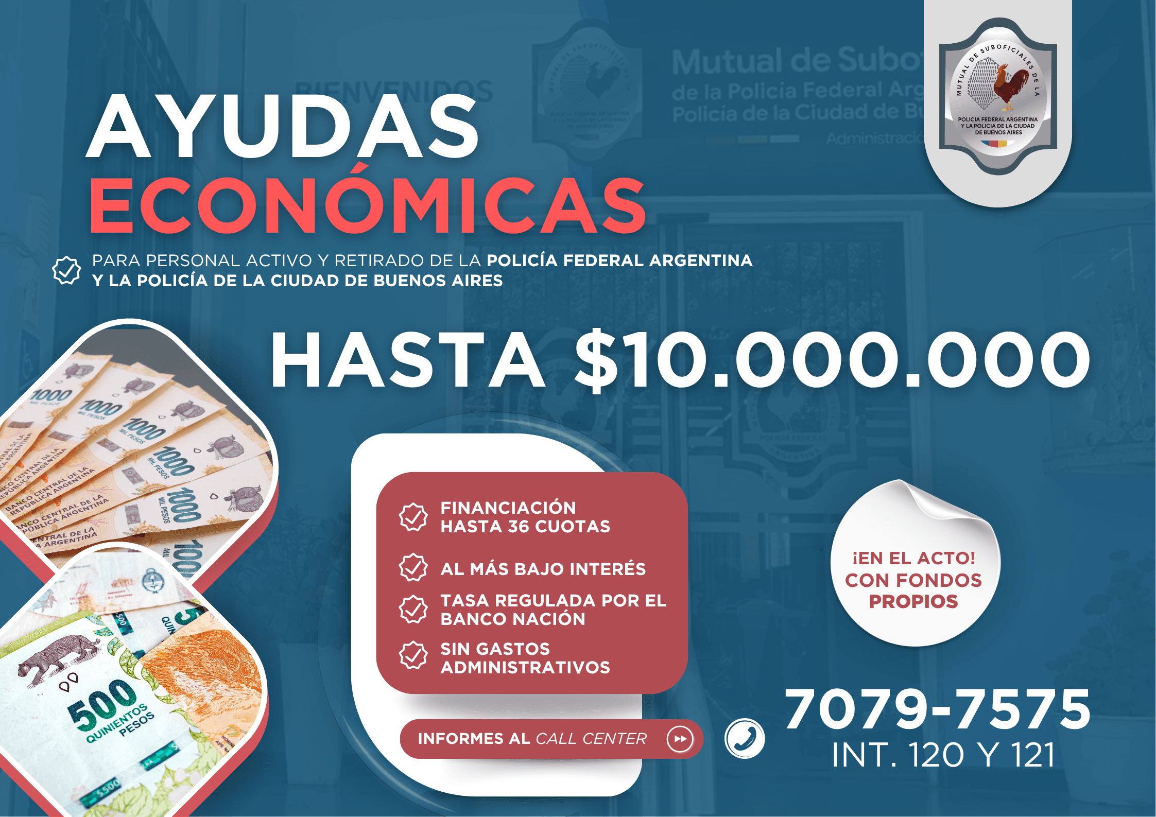 La Mutual otorga ayudas económicas de hasta $10.000.000 con financiación hasta 36 cuotas, tasa regulada por el Banco Nación y sin gastos administrativos.